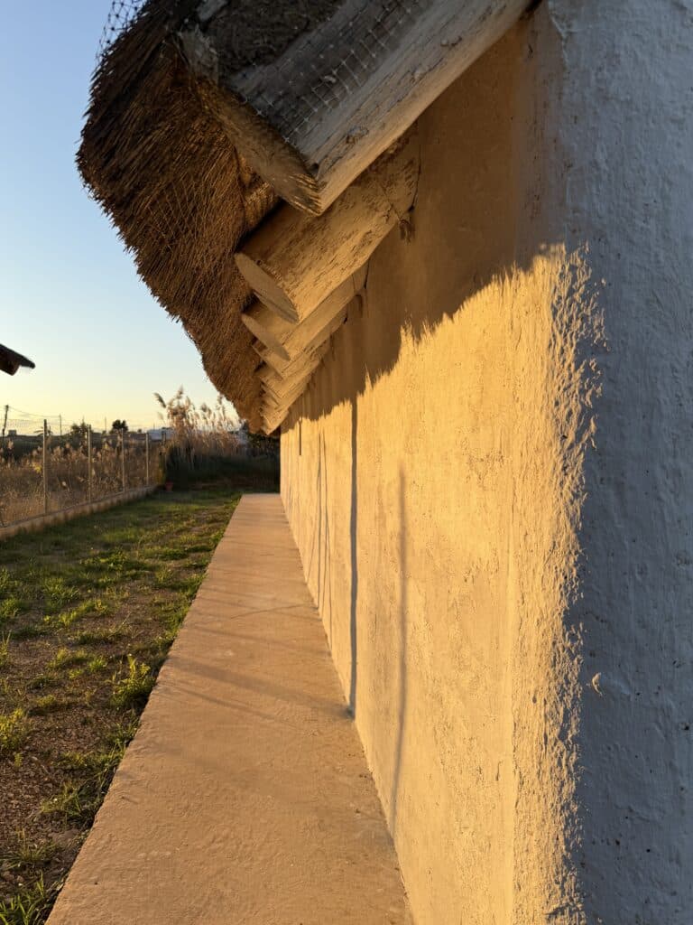 La barraca no tiene ornamentos ni complicaciones. Cada elemento cumple una función: los materiales vegetales permiten la transpiración, y su orientación y forma ayudan a mantener una temperatura interior agradable en verano y en invierno. Sin pretenderlo, son una lección de bioclimatismo y sostenibilidad con cero impacto ambiental y una muy baja huella de carbono.