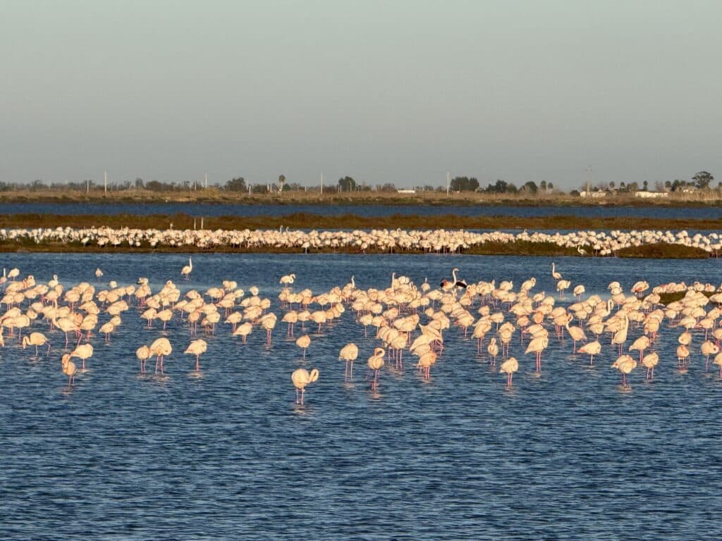 Fue conduciendo por vías secundarias, entre los reflejos del agua y los flamencos en los arrozales en invierno tras intensas lluvias, cuando apareció la primera. Es epoca de “fangueig” durante la cual se mezcla el fango con los restos de la cosecha sacando a la superifice crustaceos que son un manjar para aves, y con la mirada en busca de aves apareció la primera cubierta. Si, me gusta más la arquitectura que las aves y la cubierta inmensa de paja sobre una base blanca, las aberturas justas, no pasa inadveritada entre el paisaje del Delta, te hacen intuir que estás ante algo especial.